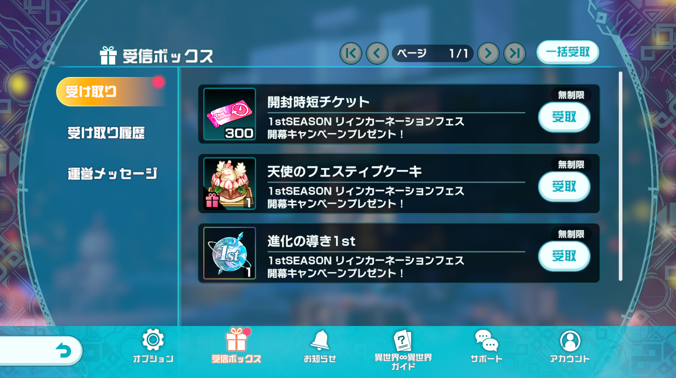 異世界異世界のリィンカーネーションイベント(復刻)に合わせて「進化の導き1st」が実装されています。