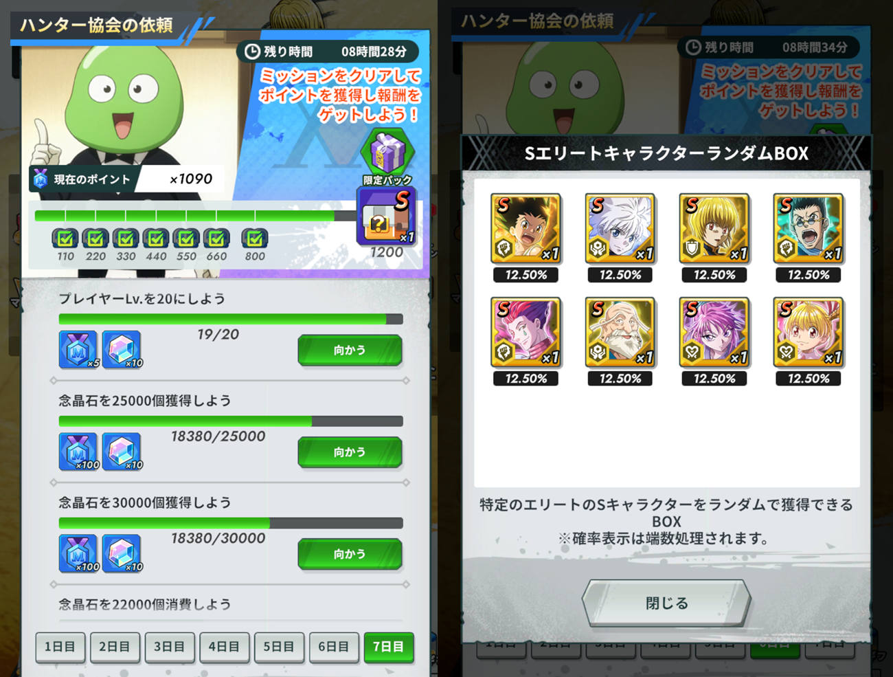 ネンサバ(HUNTER×HUNTER NEN×SURVIVOR)の「イベントセンター」→「ハンター協