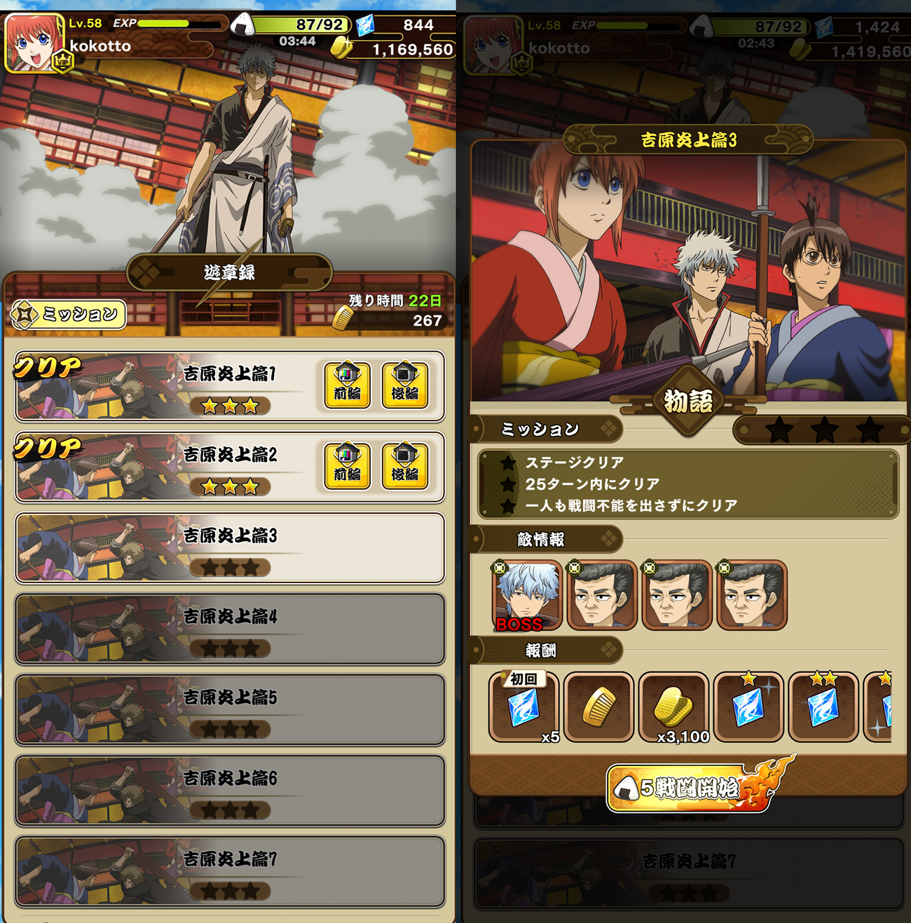 15日に切り替わり消化…消化…と思ったら遊章録 吉原炎上篇が1から再スタートになってました。周回は吉