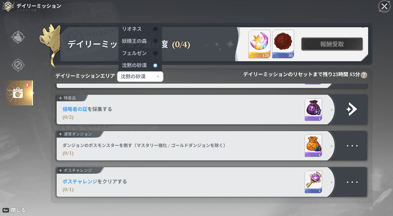 七つの大罪Origin(ナナオリ)のデイリーミッションは変更が可能です。「沈黙の砂漠」からは報酬にス