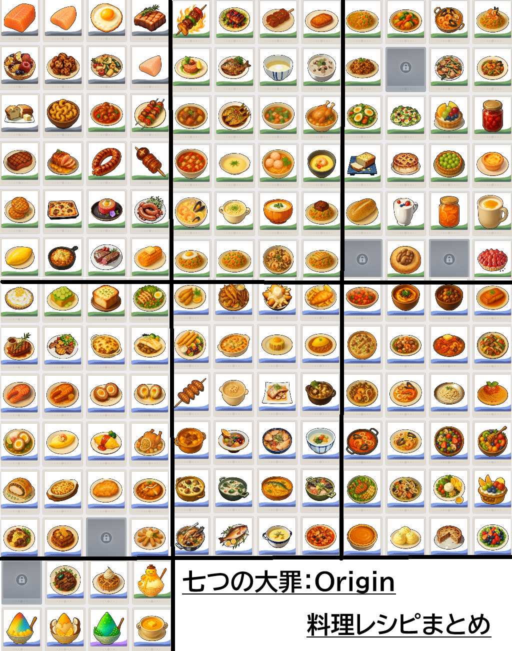 七つの大罪Origin(ナナオリ)の料理レシピ一覧です。まだ全ての料理が作れていないので随時更新予定