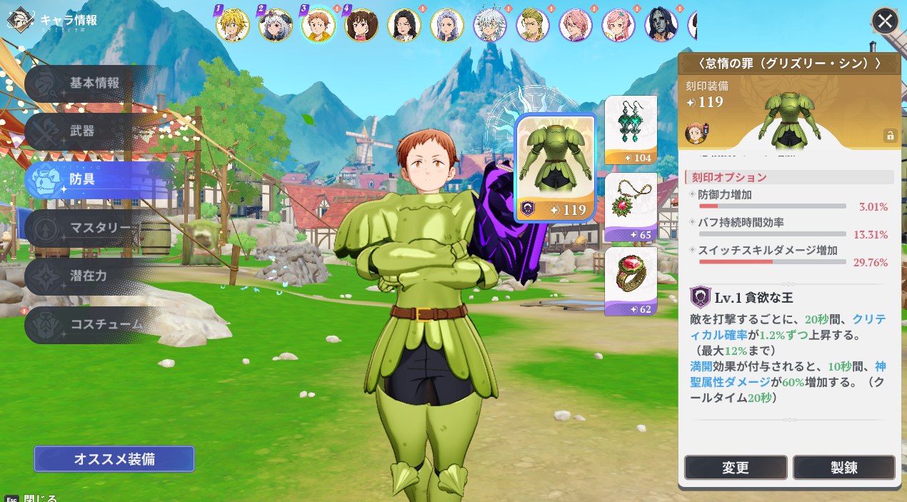 七つの大罪:Origin(ナナオリ)の各キャラクターが装備できる刻印防具(コスチューム)の作成に必要