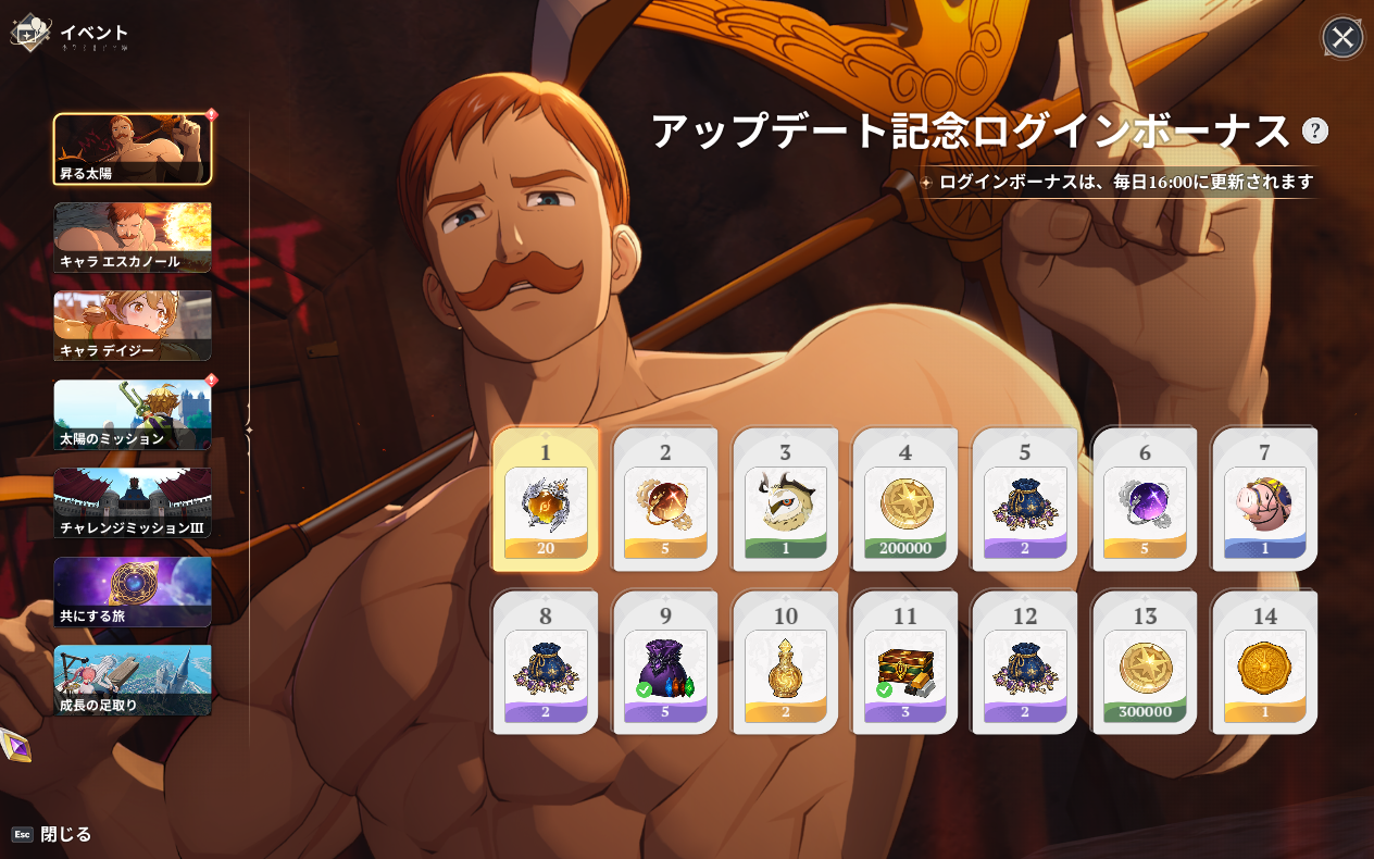 七つの大罪Origin(ナナオリ)の1.2バージョンアップデート「再び昇る太陽」のアップデート内容ま