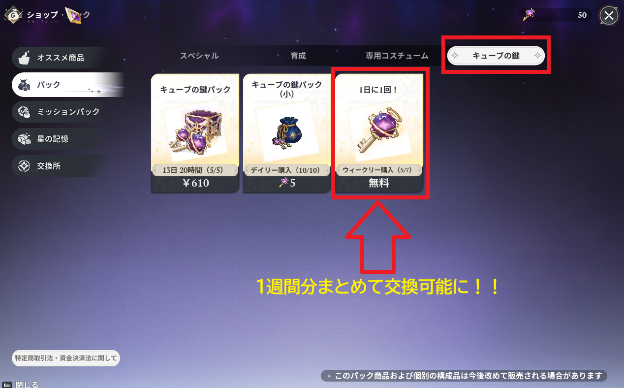 七つの大罪Origin(ナナオリ)4月8日のアップデートの変更点、毎日無料配布の「キューブの鍵パック