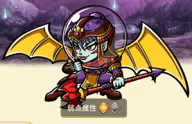 ◆特徵 ・打撃系統のキャラからの攻撃に弱い。 ・毒状態になると行動が強化される。 ◆主な使用スキル ・毒状態時に使用する。自身の与ダメージを大きく上昇する。 【聖進飛足】自身の行動速度を上昇する。最大HPの25%分のダメージを受けると解除される。【聖夢化光】[防御貫通]敵全体に低威力の黄属性攻撃を行う。 【高速捕獲聖夢剣】[防御貫通]予兆後、敵全体に中威力の黄属性攻撃を行う。 |