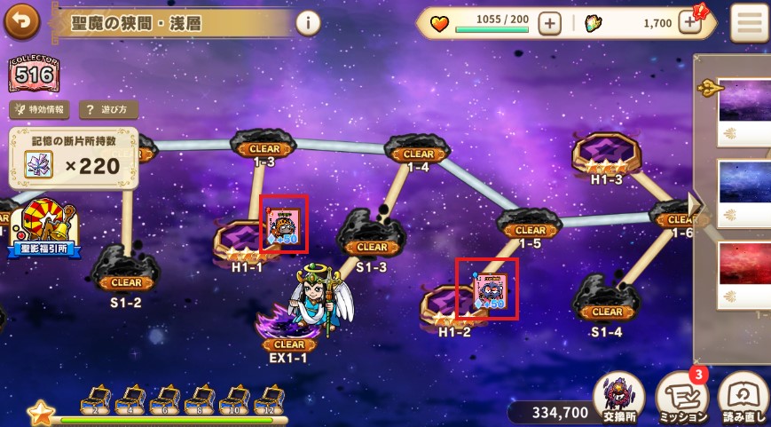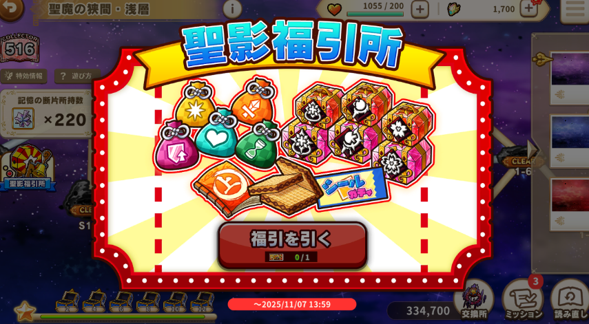 スタミナ回復に必要なチョコは左側にある聖影福引所やショップのデイリー交換で入手できます。