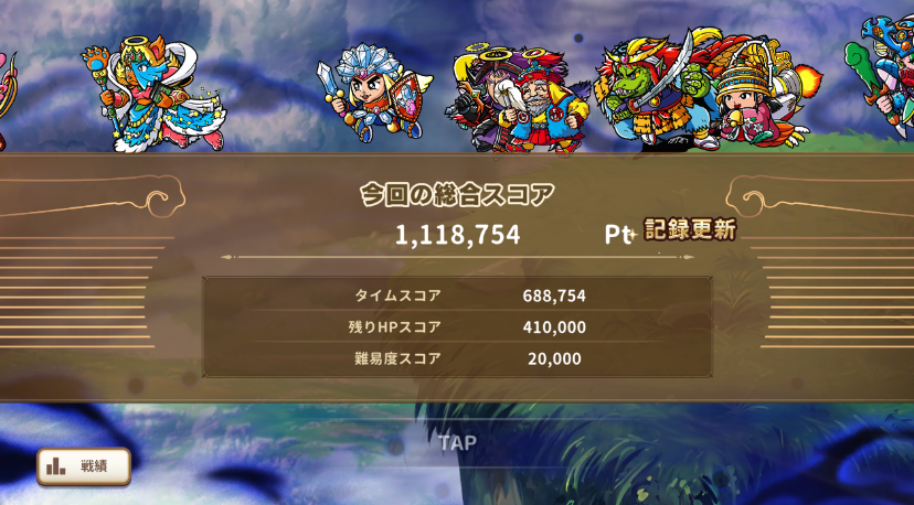 111万と微妙なスコア。こんなざまでは動画アップしても意味ないかぁ。育成不足かなぁ。とりあえず1分おきの予兆だけ前衛の奥義を入れておけば勝つには問題なさそう。それでも耐えきれない場合は脆弱を解除するとよさそうです。