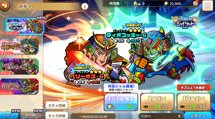 ビックリマンワンダーコレクション(ワンコレ)では2月9日から「ジャイケット ベリーオズ・G」「ジャイケット ディオコッキー・G」がピックアップされたガチャが開始!