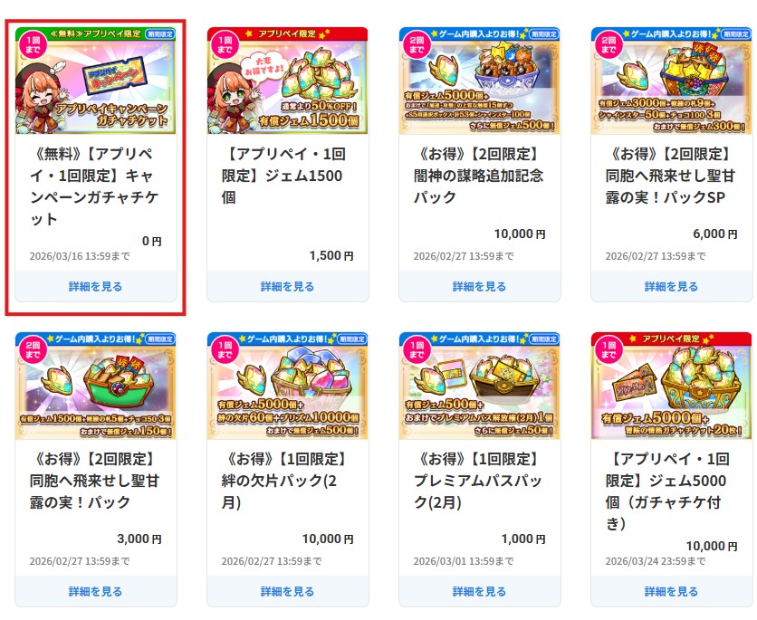 今回は公式ストア「アリペイ」で配布されているガチャチケットを使用する事で1体無料で入手する事ができます。アリペイのURLは以下。もしくはゲーム内で移動してください。期限は3月16日までとなっていて、キャンペーンガチャは3月23日までとなっています。通常の聖ウォーマンIIガチャは3月3日までとなっています。悩む場合は異なる期間に注意してください。2月中には引いておきましょう。