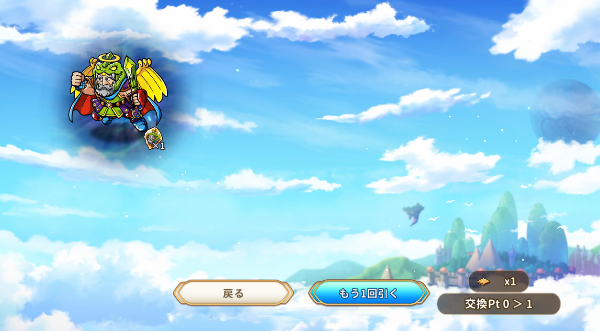 通常では100または200必要な交換ポイント1でキャラクターを入手できるのでガチャ画面右下から移動しましょう。