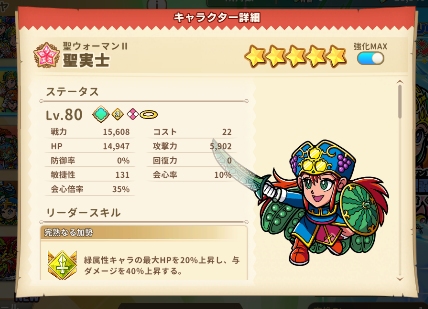 聖ウォーマンII聖実士は奥義で自身+エースの与ダメバフと奥義威力最大2.5倍。スキルで脆弱を付与。エースを強化できるのが特徴の中衛。