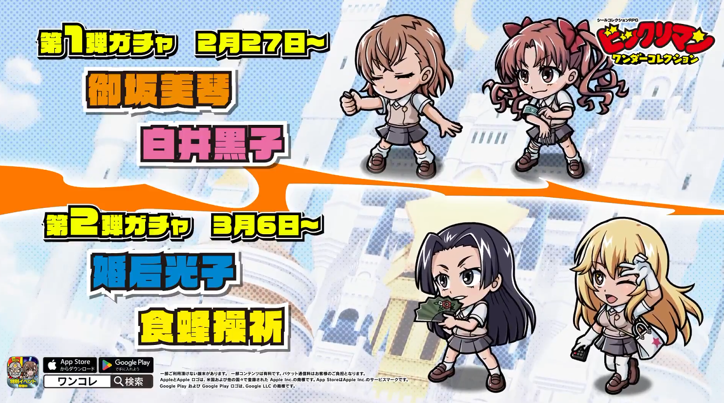 - ❤️ 27開始!ワンコレ×超電磁砲「御坂美琴」「白井黒子」実装!後半も2キャラ!