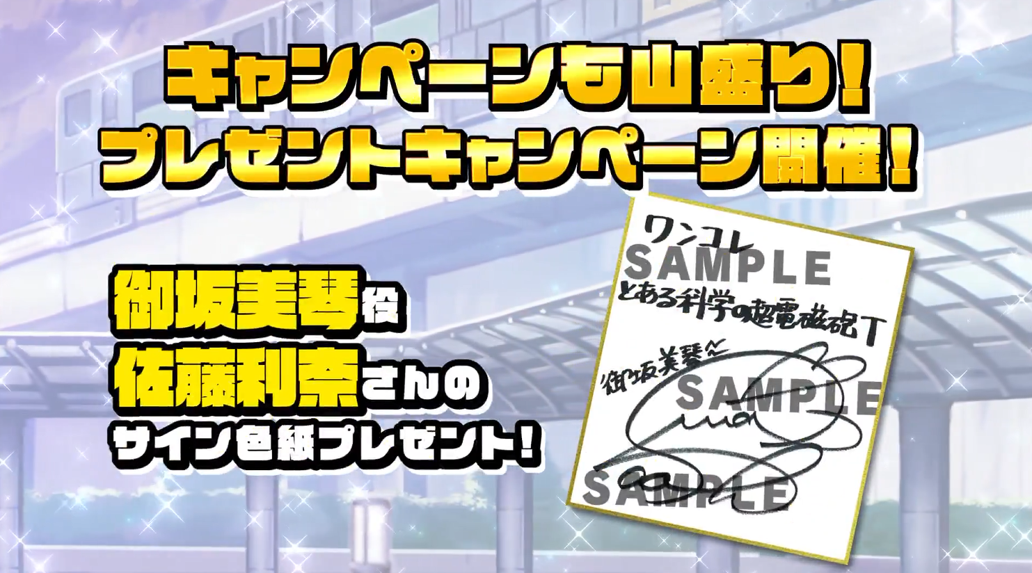 御坂美琴役の声優さん「佐藤利奈」さんのサイン色紙プレゼントキャンペーンも開催。