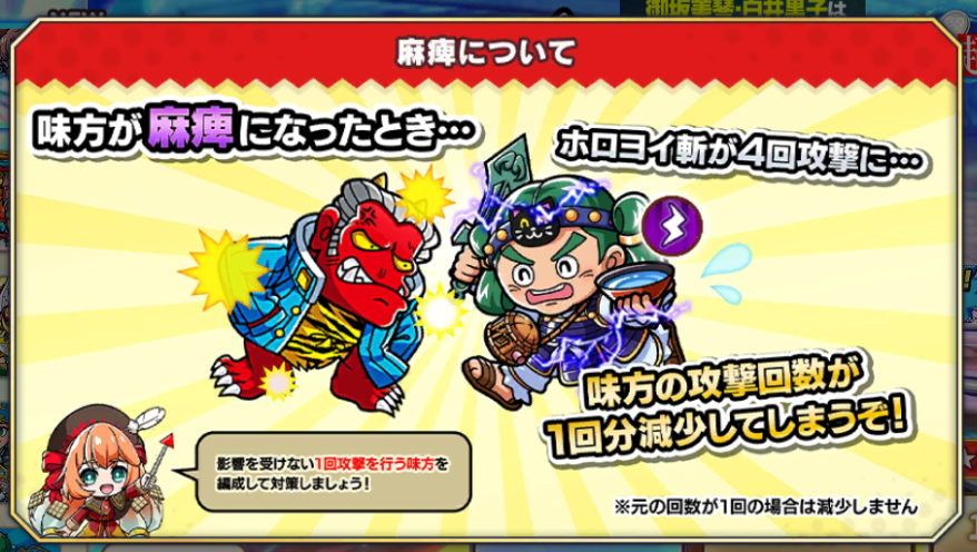 味方が麻痺を受けると多段系の攻撃回数がダウン。これはちょっと萎縮と被りますね。