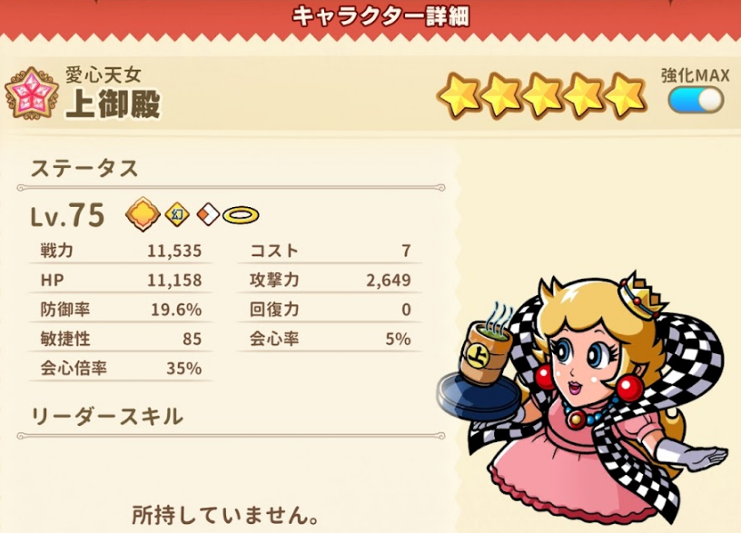 UR【愛心天女】上御殿入手【10章】EX10-2 7弾【黄属性キャラが奥義発動後】味方全体のHPを250回復する。後衛の回復+14[天使×5]天使の与ダメージ7%上昇