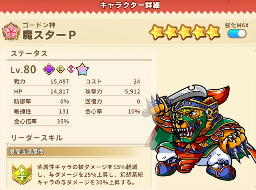 魔スターPのステータス評価と順位