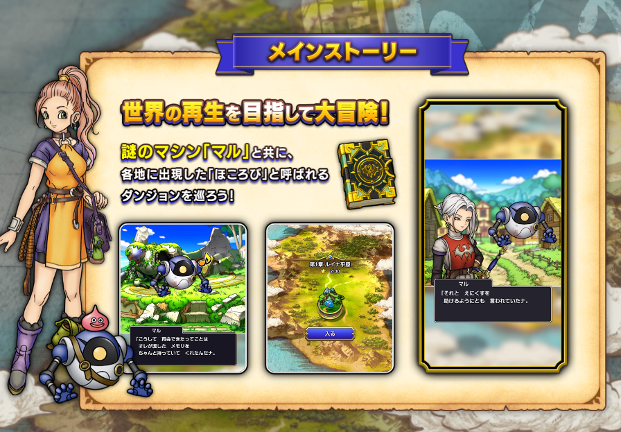- 謎のマシン「マル」と共に各地に出現した「ほころび」と呼ばれるダンジョンを巡ろう