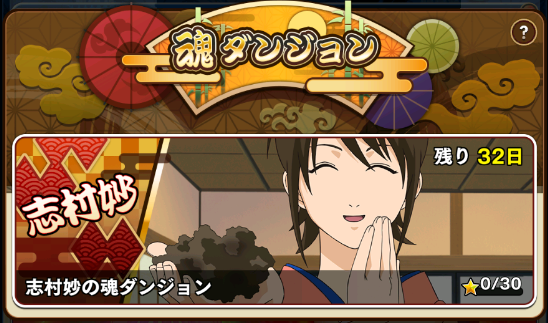 「魂ダンジョン」ではキャラの欠片を獲得できます。現在は「志村妙」のキャラの欠片を獲得できる魂ダンジョンが開催。