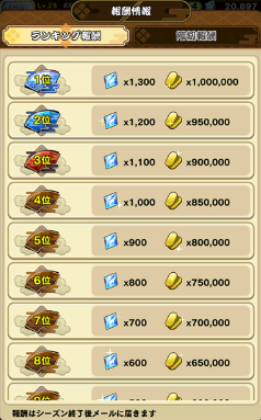 シーズンごとにランキングに応じて報酬を獲得できます。