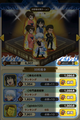 決闘場では勝敗に応じてスコアを獲得し、ランキングを競います。攻撃チームと防御チームを編成し、戦闘は自動で進行します。