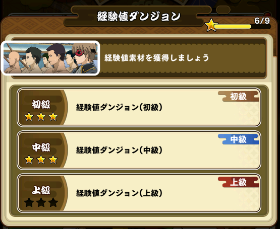 「素材獲得先に移動」ボタンを押すと経験値素材を獲得できるデイリーダンジョンに直接移動できます。