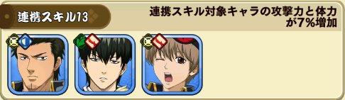 連携スキル対象キャラの攻撃力と体力が7%増加