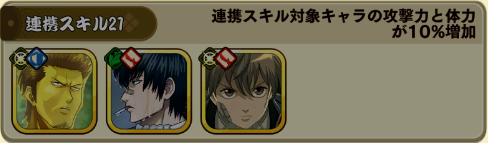 連携スキル対象キャラの攻撃力と体力が10%増加