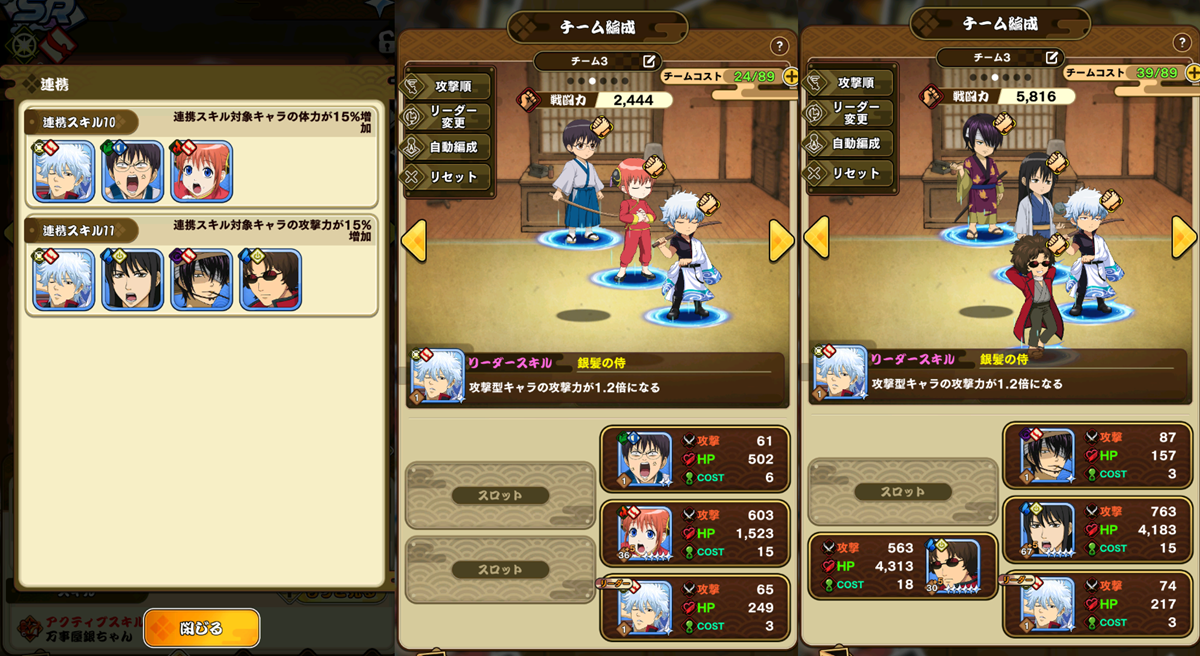 - 連携スキル⑮SSR坂田銀時・志村新八・神楽