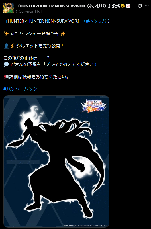ネンサバ(HUNTER×HUNTER NEN×SURVIVOR)の公式Xにて新キャラのシルエット情報が公開!!これは天空闘技場編に登場した「カストロ」かな??