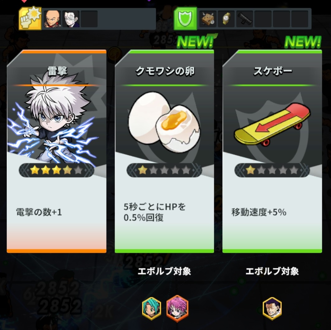 HUNTER×HUNTER NEN×SURVIVOR(ネンサバ)の挑戦「チャレンジバトル」で出てくるチャレンジミッションの『スキルを3個以上エボルブさせてクリア』が結構大変。エボルブはステージで獲得するオーラで取得できるスキル選択でキャラスキルLv5とエボルブ対象のスキルLv1以上で発動します。