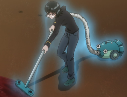 自らの念能力で具現化した掃除機「デメちゃん」に様々なものを吸い込ませることができる。旅団の起きて遵守と団長への信頼は絶対。