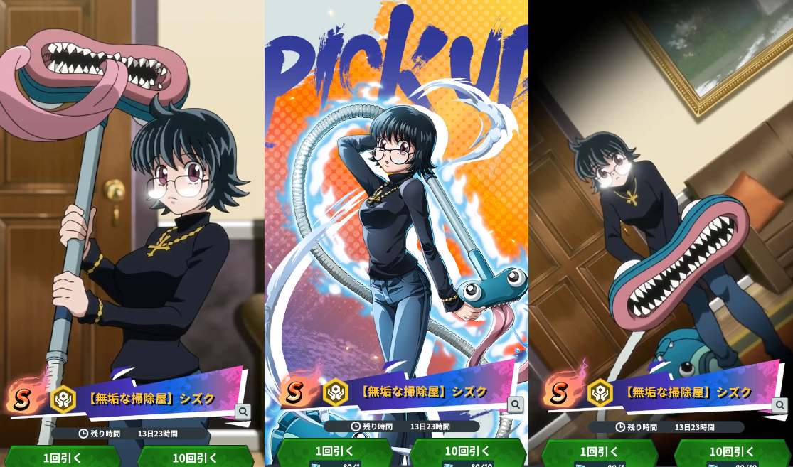 HUNTER×HUNTER NEN×SURVIVOR(ネンサバ)の【無垢な掃除屋】シズクガチャが開始です!カストロに続く新キャラ第2弾!