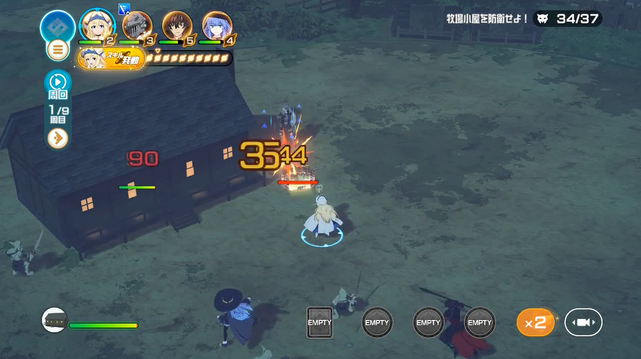 EP4の戦闘は牧場小屋の防衛が必要で右下の牧場小屋のHPが0になると失敗となってしまいます。女神官などの攻撃ができないキャラがいると難しくなる印象だったのでシンプルにアタッカーを増やすのがオススメです。