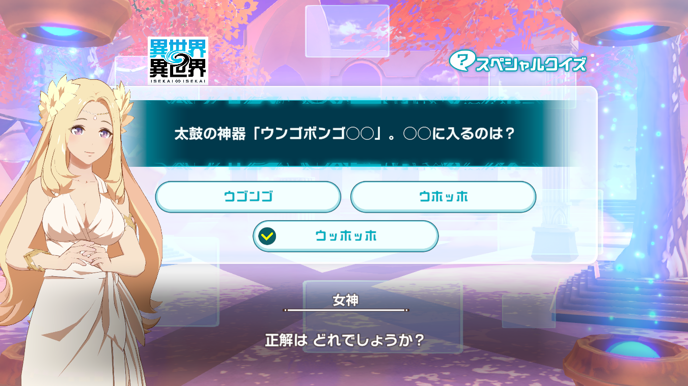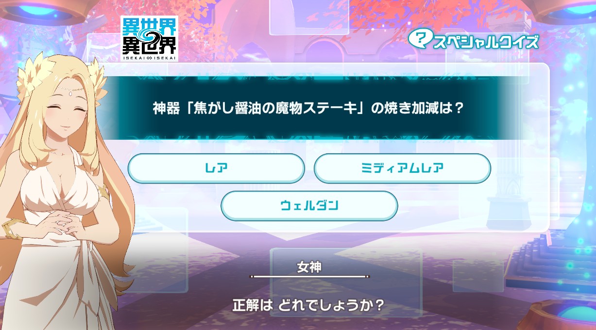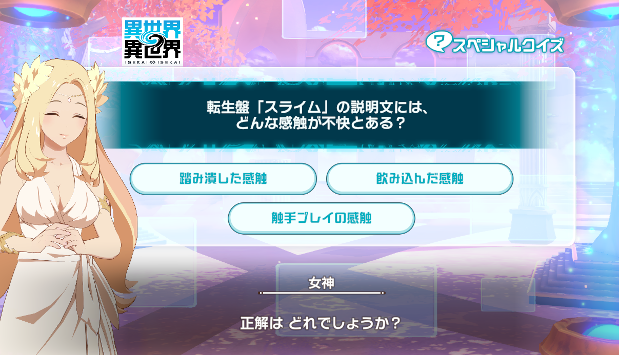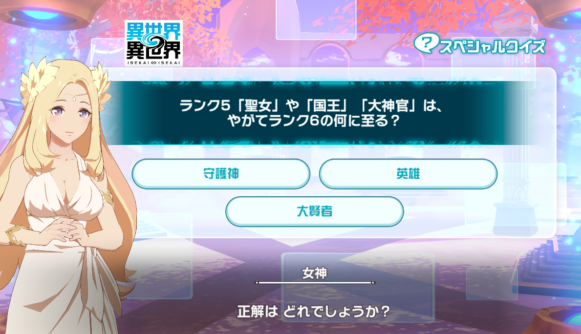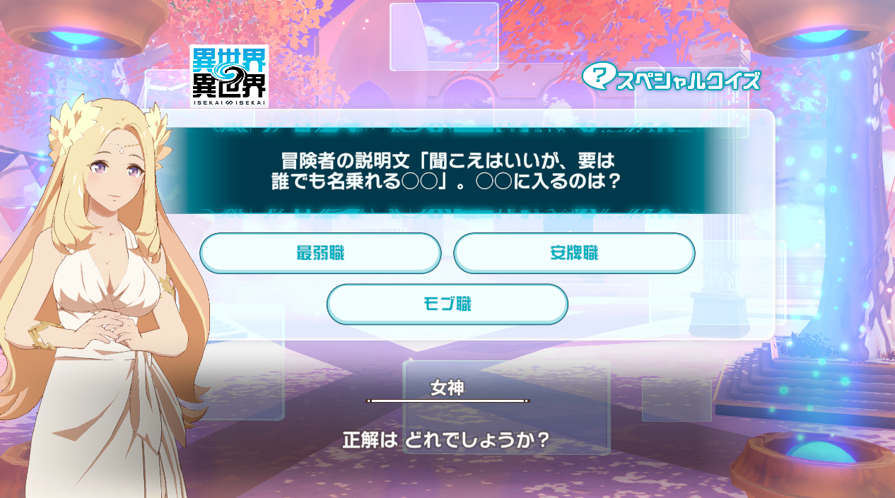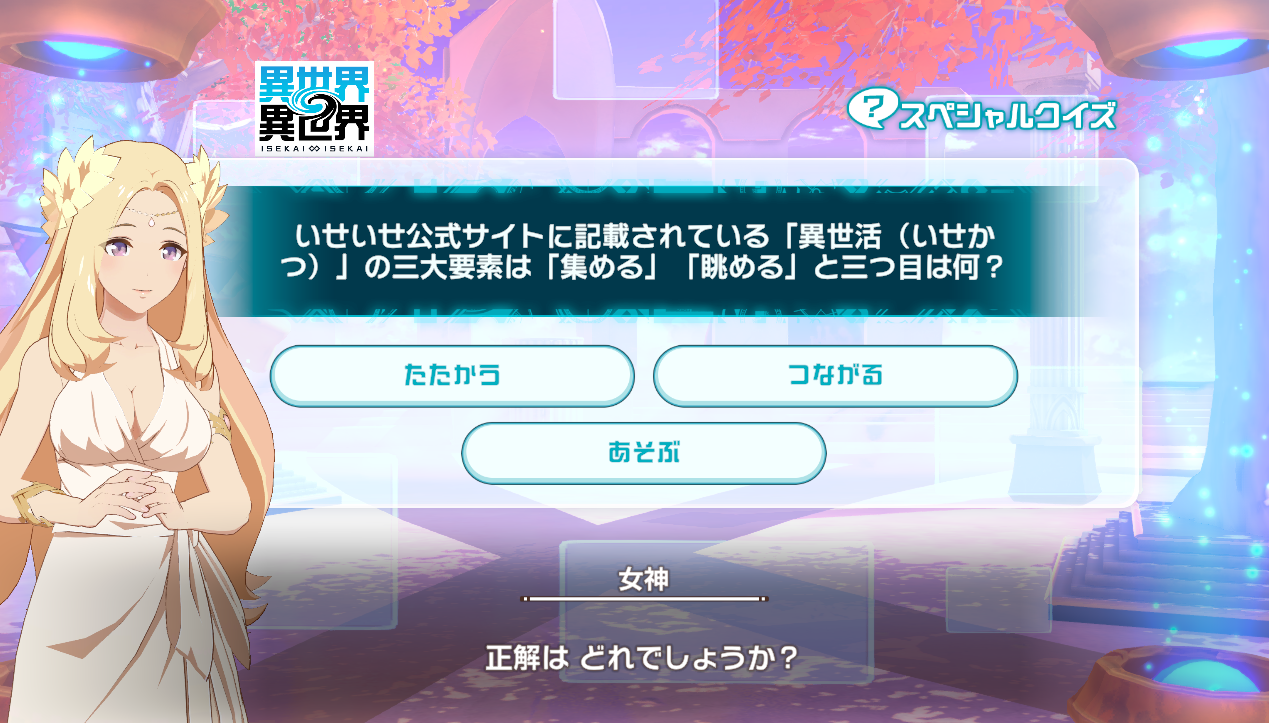 異世界∞異世界15時更新のスペシャルクイズの答えまとめ。「異世界異世界(いせいせ)」のクイズが開催中です。