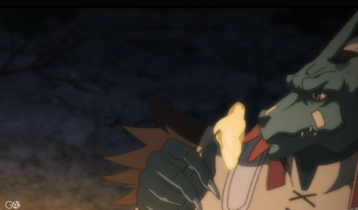 このシーンの後にゴブリンスレイヤーが出したチーズに蜥蜴僧侶がドハマりします。
