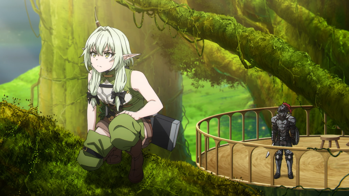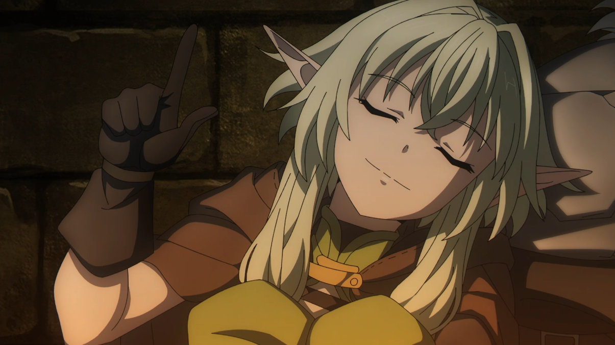 1つ前のシーンで水着シーンを発見。女性キャラは多いのですがゴブリンスレイヤーは殺伐としているので貴重です。やっぱり妖精弓手は金床なんだなぁ。