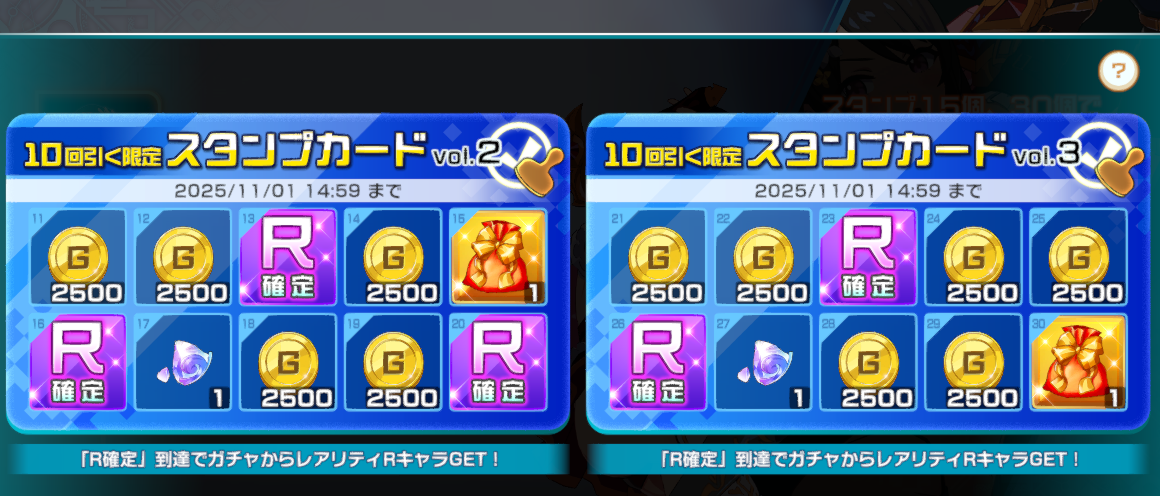 この特別な衣装ですが、ガチャで直接入手するわけではなく、150連目と300連目のスタンプ報酬で獲得する事ができます。4.5万と9万の転生石です。つまり、1人だけ特別な衣装化したければ4.5万でOKですが、どちらも特別な衣装化したい場合は9万の転生石が必要になります。