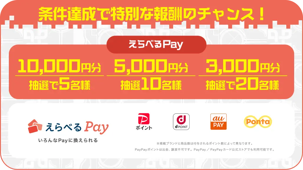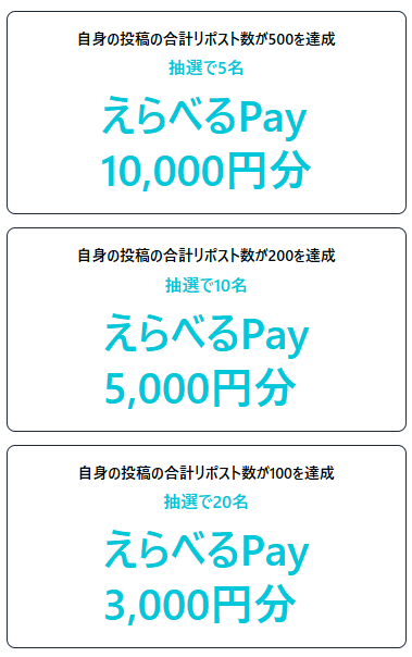 えらべるpayでの現金配布もある!3000~10000円で35名。