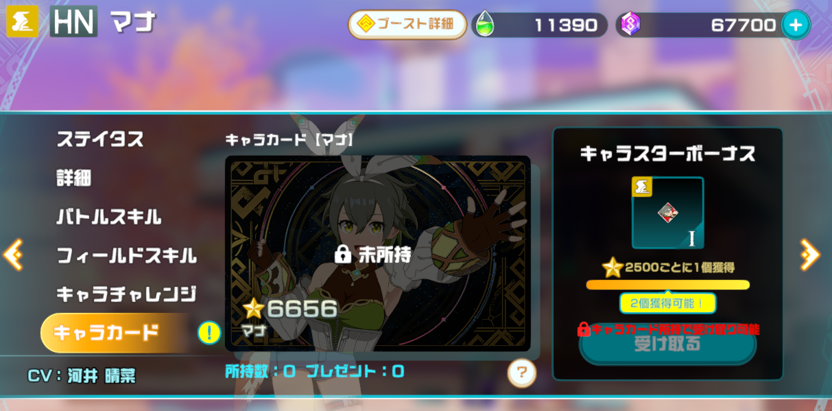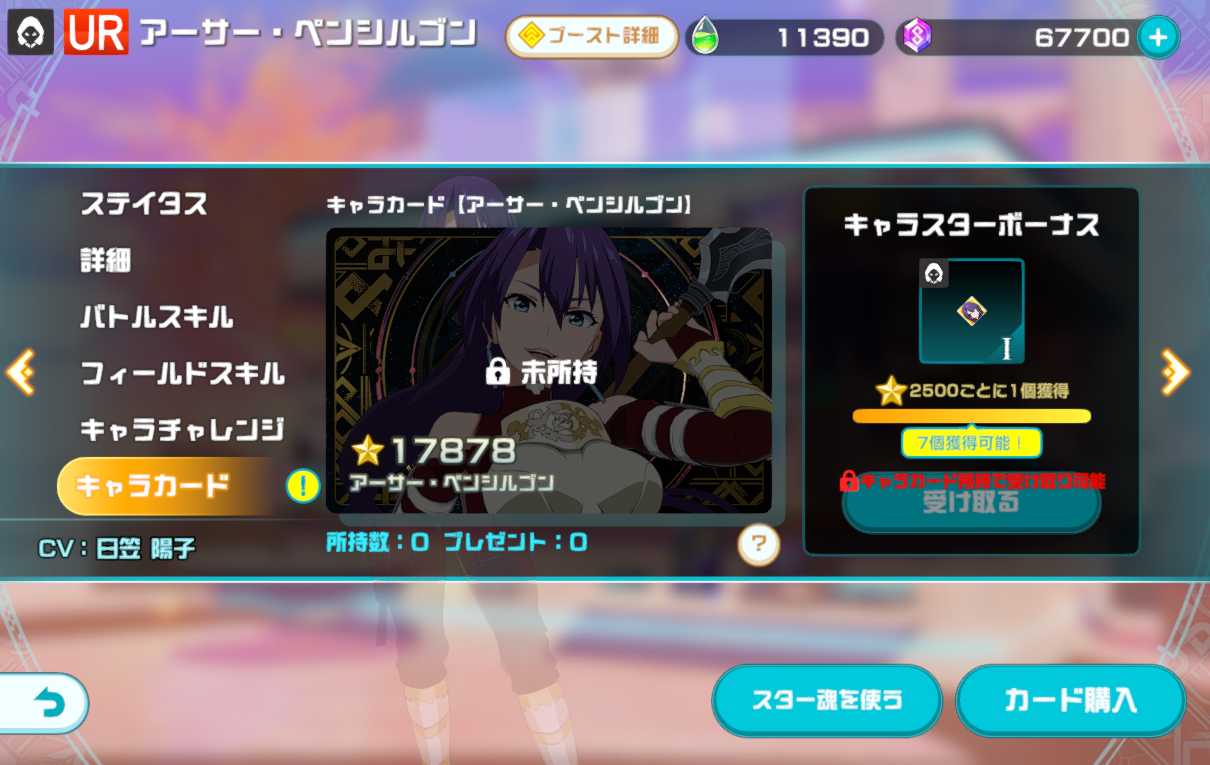 購入するとキャラカードが解放され、今まで貯めたキャラスターの分、キャラスターボーナスを受け取れます。