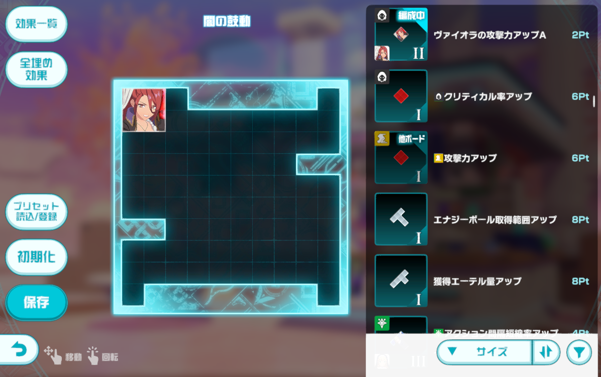 加護片は4×4のもので、どのキャラもこの形の加護片がキャラスターボーナスで入手できるようです。
