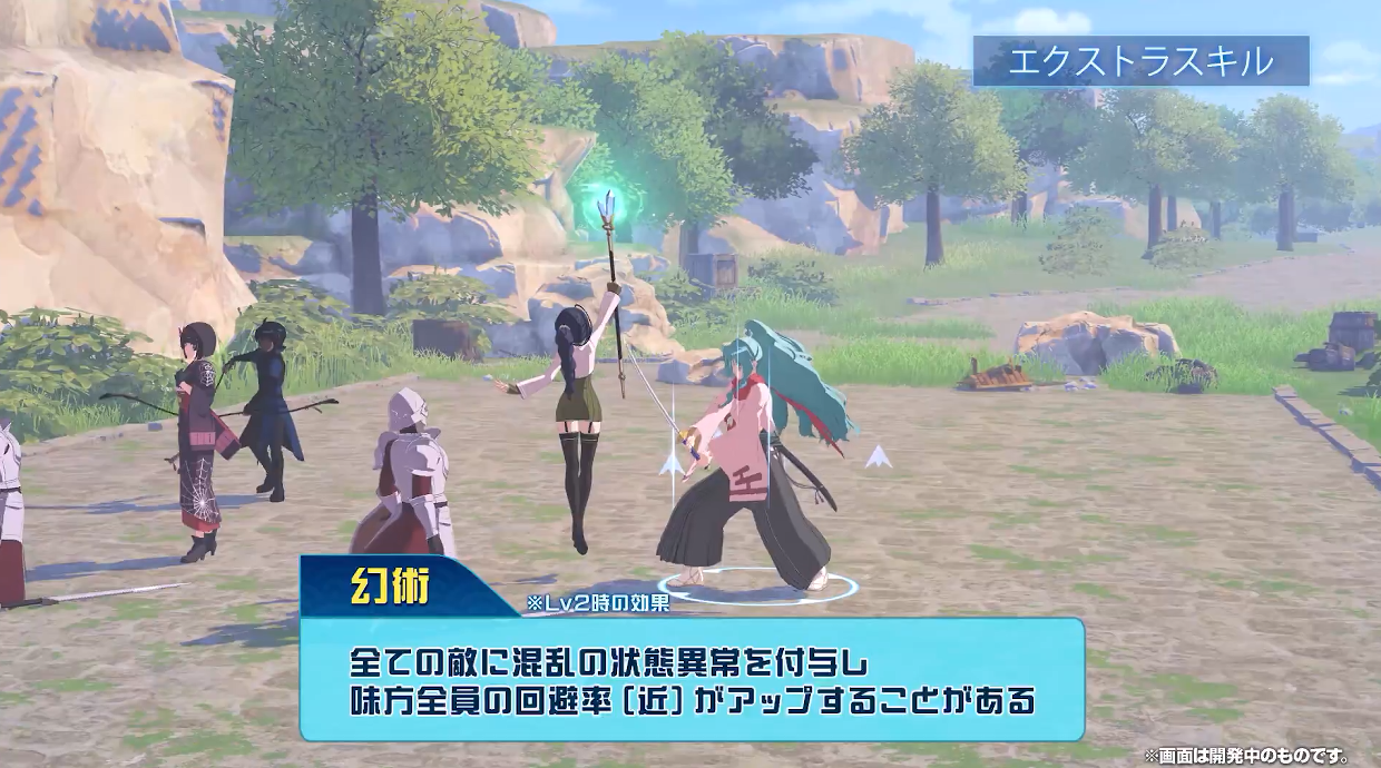 エクストラスキルは敵全体に混乱の状態異常付与と味方全体の回避率アップです。