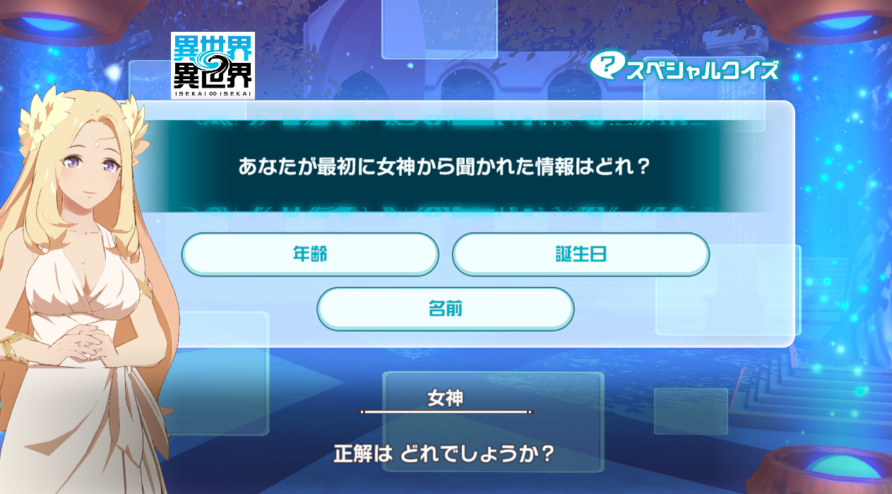 あなたが最初に女神から聞かれた情報はどれ?異世界∞異世界クイズ