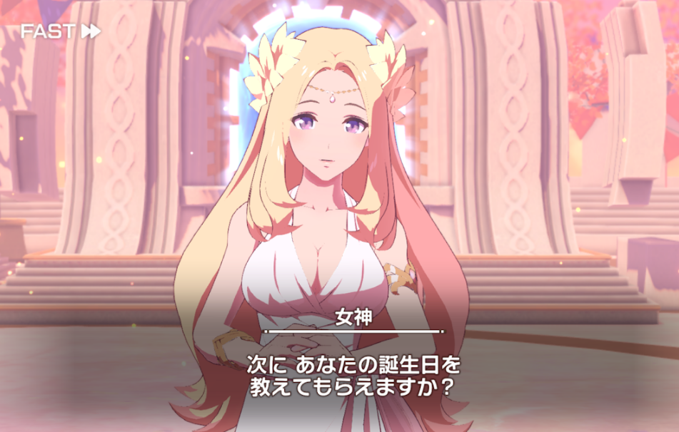 そして女神に最初に聞かれたのは「あなたのお名前を伺ってもいいですか?」でした。答えは「名前」です。