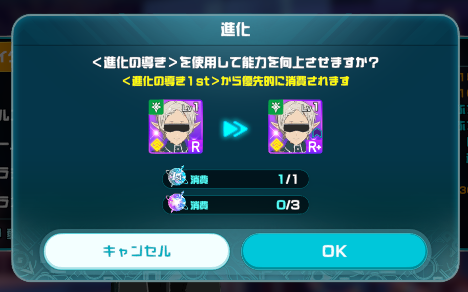 異世界異世界のリィンカーネーションイベント(復刻)に合わせて「進化の導き1st」が実装されています。この進化の導き1stですが、1stシーズンのキャラクターにしか使えないようだ。