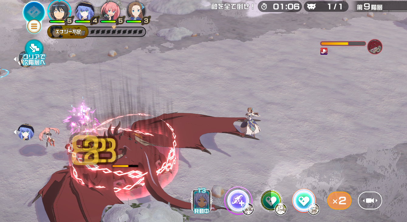 レッドドラゴンは前回のとんスキの強敵と比べても特に特徴がありません。範囲避けるくらい?飛び上がると攻撃できないのでサポーターのバインドで止めると楽かもしれません。
