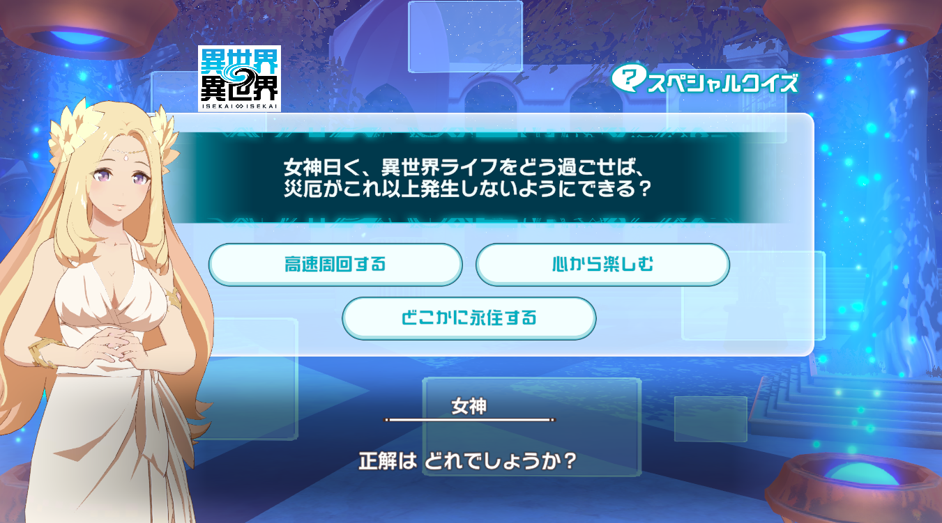 - ❤️ いせいせの女神は何を司る女神?異世界∞異世界クイズ