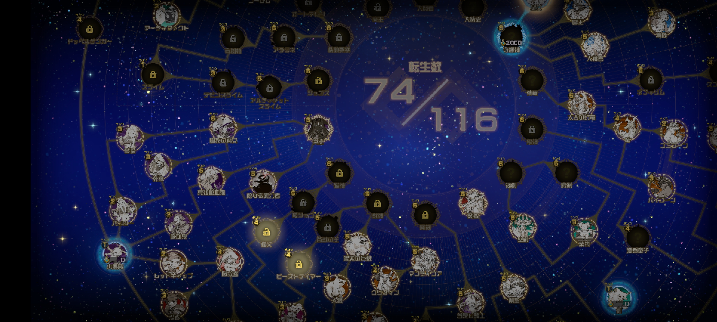 - 情報ありがとうございます。転生数90辺りだと2周目でも出るならもう少しで答えを紹介できるかもしれません。 1周目限定だと…日付をまたぎそうです。