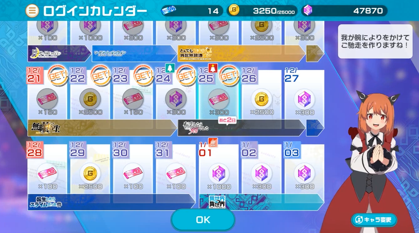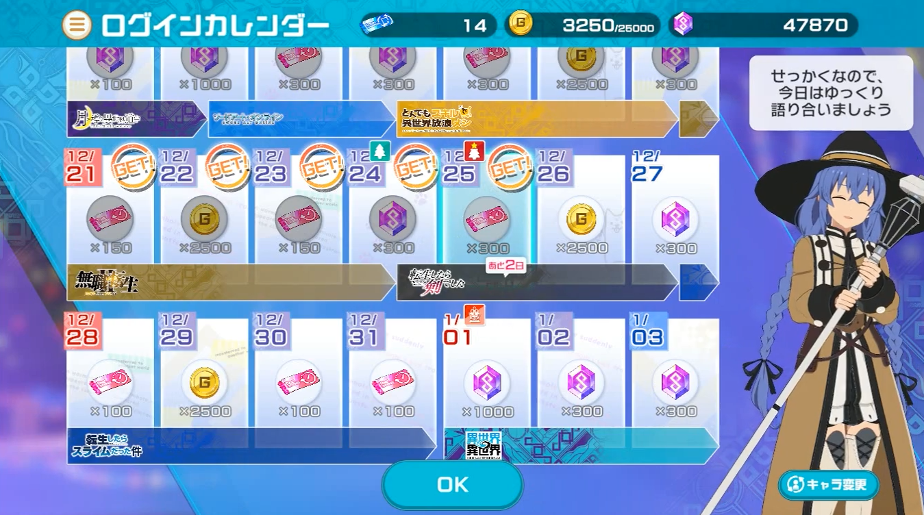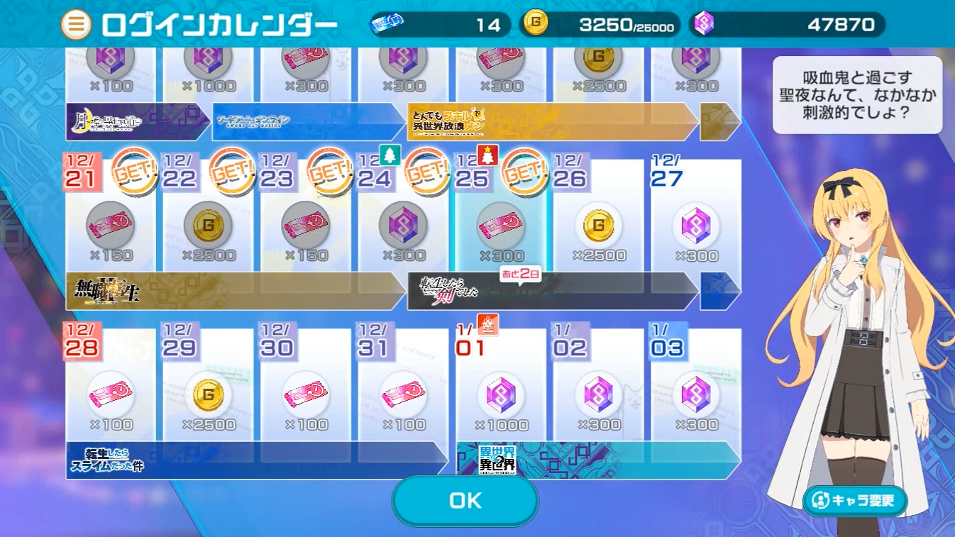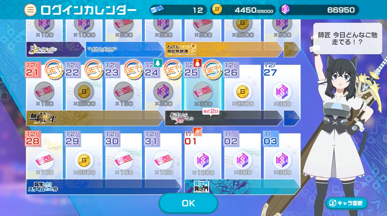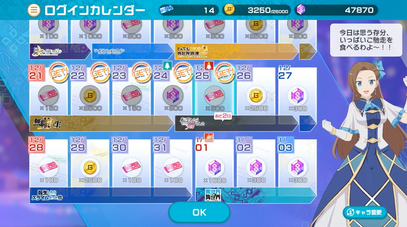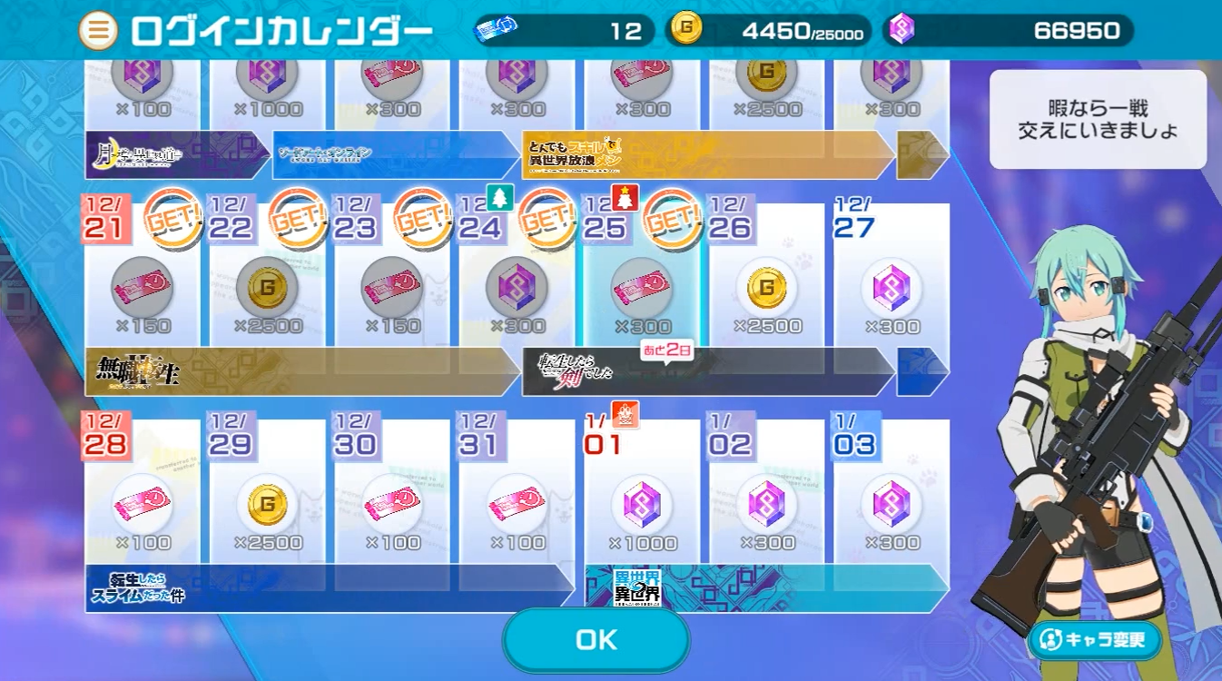 異世界異世界(いせいせ)のログインカレンダーでクリスマス専用のボイスがある手持ちキャラをまとめました。全てのキャラにあるわけではなく、例えば転スラや第七王子などはありません。以下の画像を掲載しているキャラは上記の動画でボイスをチェックする事ができます。