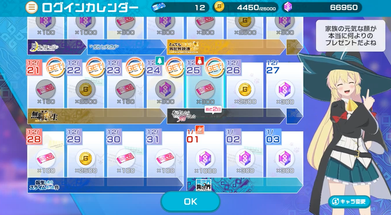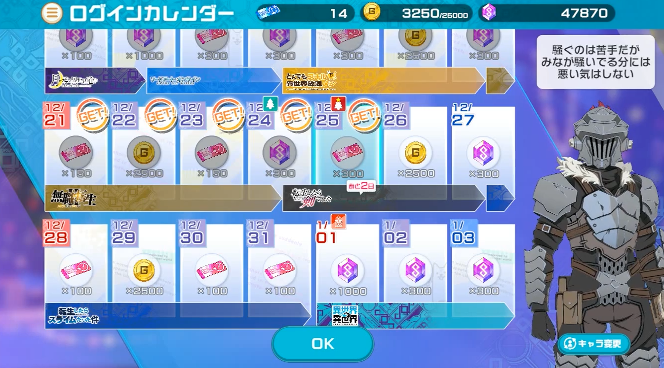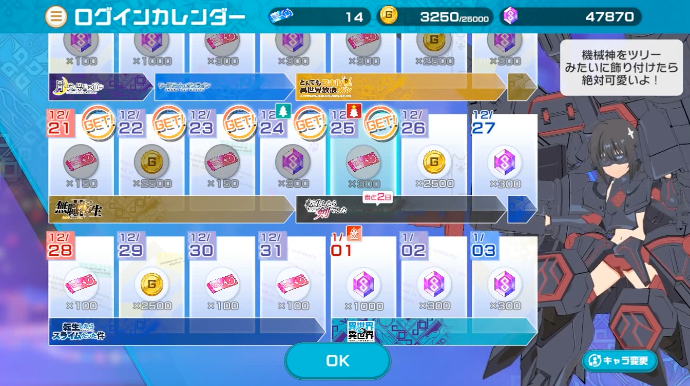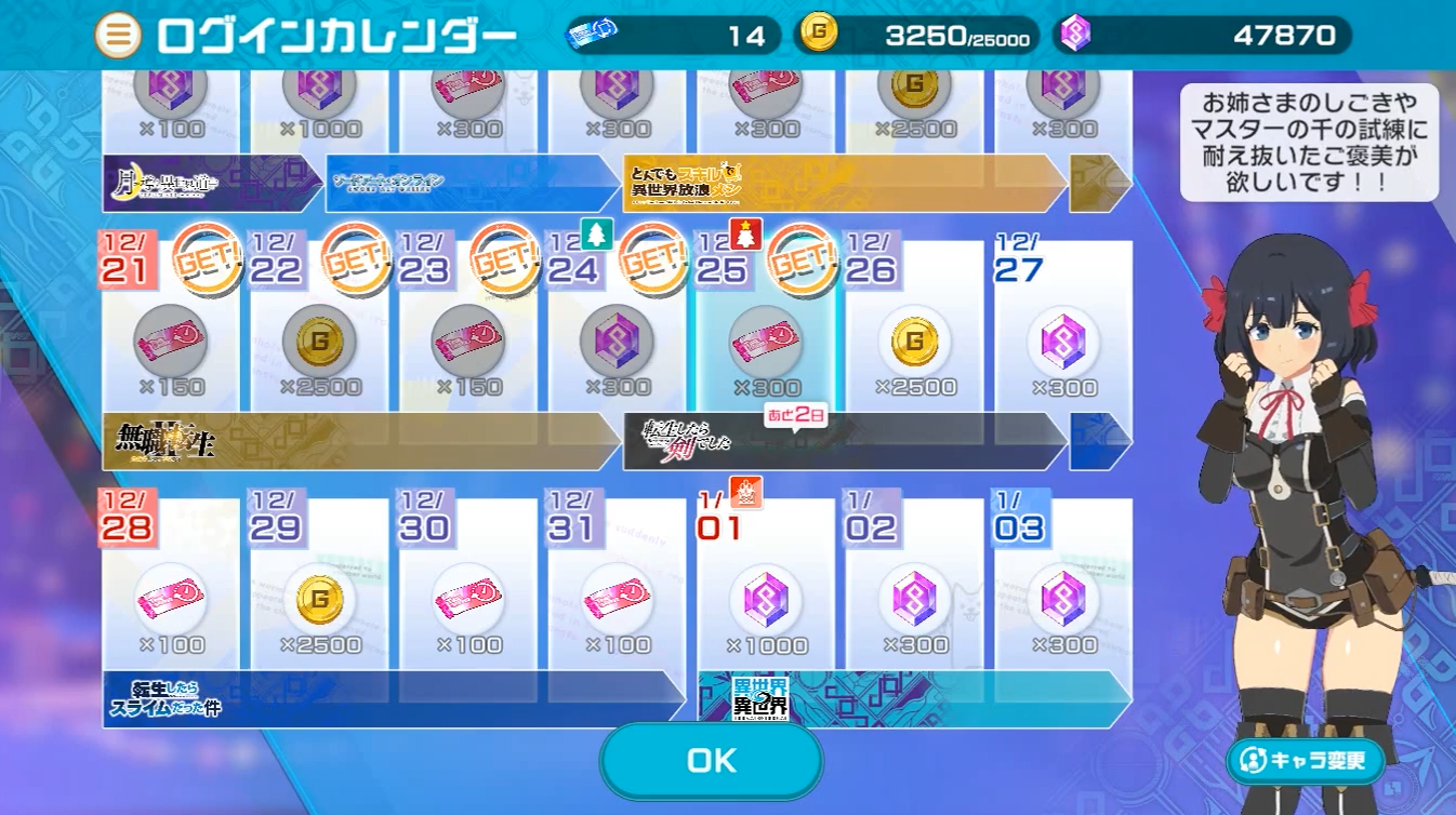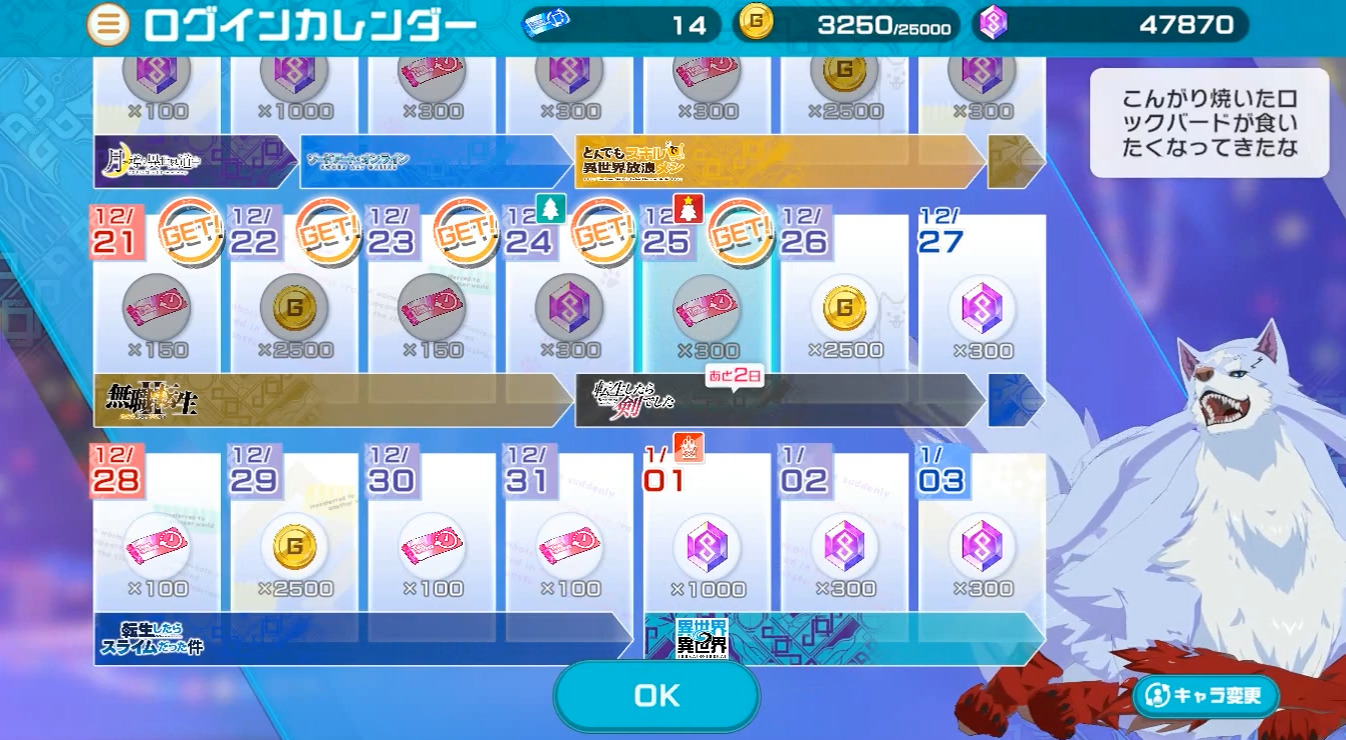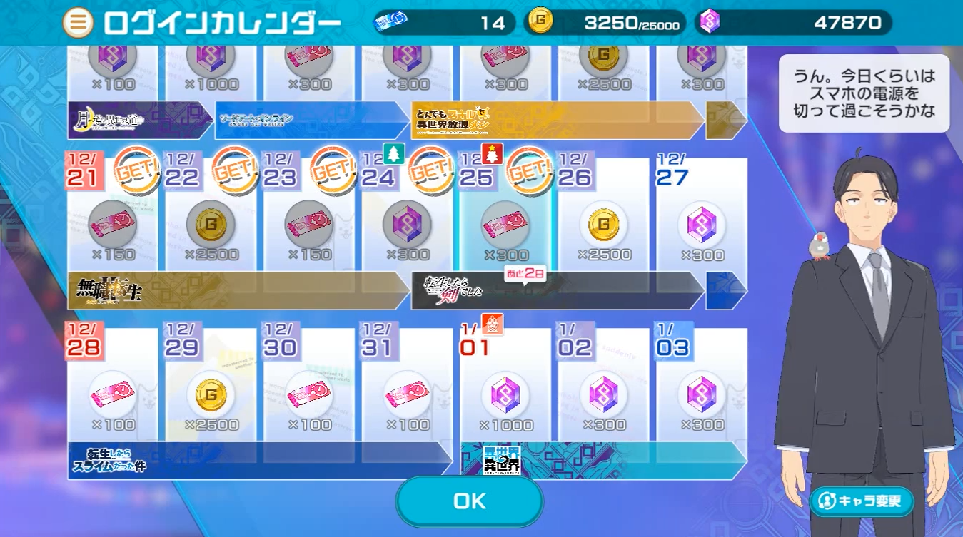 異世界異世界(いせいせ)のログインカレンダーでクリスマス専用のボイスがある手持ちキャラをまとめました。全てのキャラにあるわけではなく、例えば転スラや第七王子などはありません。以下の画像を掲載しているキャラは上記の動画でボイスをチェックする事ができます。