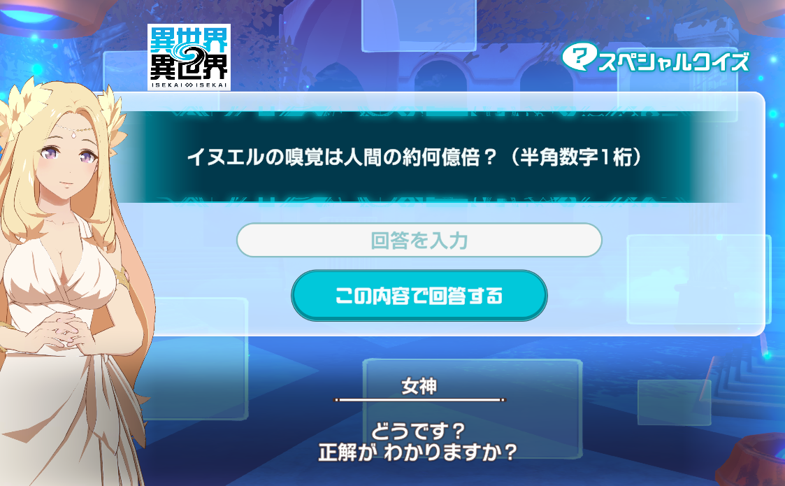 - ❤️ いせいせの女神は何を司る女神?異世界∞異世界クイズ